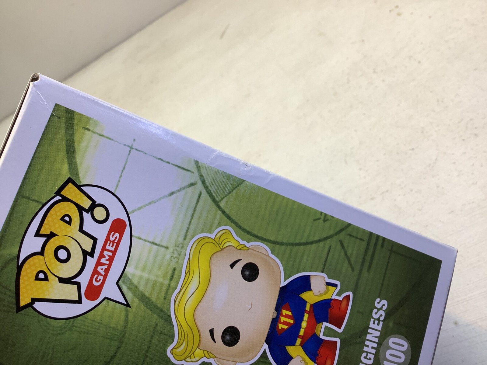 Condition issue Funko pop of Vault Boy (Toughness) from Fallout game series.