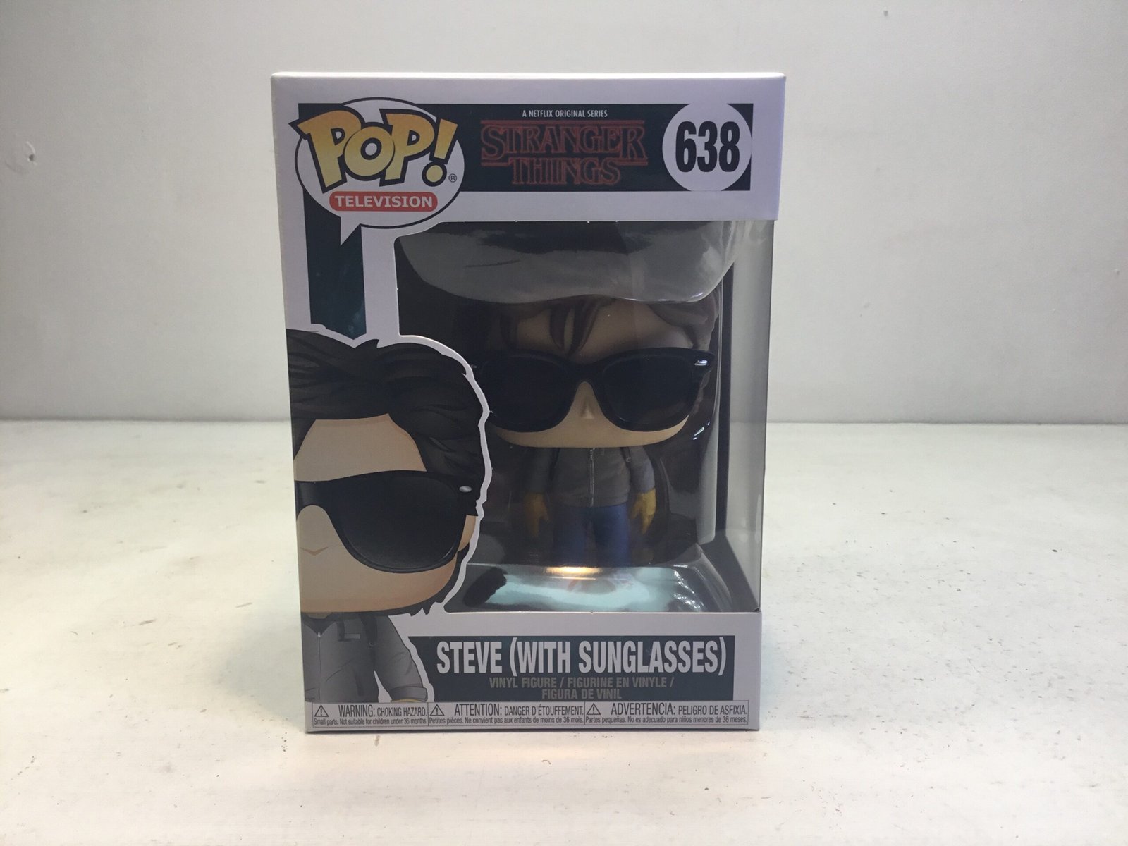 Very minor condition issue Funko pop of Steve with sunglasses from Stranger Things TV series.